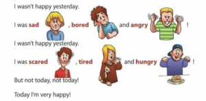 • B: Were you tired/angry/happy/sad/hungry/bored/scared, yesterday? — Ты вчера был уставшим/сердитым/счастливым/грустным/голодным/ Тебе было скучно?/ Тебе было страшно?