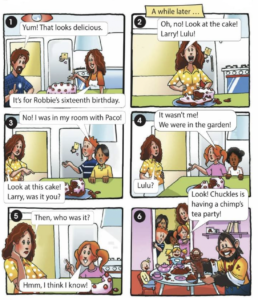 3. Look at this cake! Larry, was it you? — No! I was in my room with Paco! -Взгляните на этот великолепный десерт! Ларри, это твоя работа? — Нет! Я находился в собственной комнате вместе с Пако!