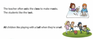 • The teacher often asks the class to make masks. The students like the task — Учитель часто просит класс сделать маски. Учениками нравится задание.