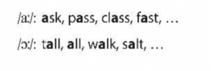• /a:/ — ask — спросить, pass — пройти, class — класс, fast — быстрый, task — задача, grass — трава, glass — стакан, mask — маска